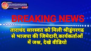 श्रीडूंगरगढ लाइव न्यूज़ 9 अक्टूबर 2023 राजस्थान विधानसभा चुनाव को लेकर बड़ी खबर आ रही है। यहां श्रीडूंगरगढ़ से भाजपा...