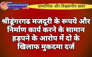 श्रीडूंगरगढ़ लाइव न्यूज़ 15 अक्टूबर 2023 श्रीडूंगरगढ़ थाने में मुकदमा दर्ज करवाते हुए मकान निर्माण कार्य के ठेकेदार सलीम चुनगर...