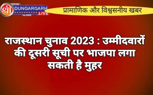 श्रीडूंगरगढ़ लाइव न्यूज़ 17अक्टूबर 2023 राजस्थान में होने वाले आगामी विधान सभा चुनाव के लिए भाजपा मंगलवार को पार्टी उम्मीदवारों...