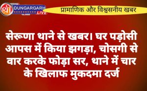 श्रीडूंगरगढ़ लाइव न्यूज़ 18 अक्टूबर 2023 श्रीडुंगरगढ़ थाने में जाति सूचक गाली देने के आरोप में दो के खिलाफ मुकदमा...