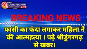 श्रीडूंगरगढ़ लाइव न्यूज़ 28 अक्टूबर 2023 श्रीडूंगरगढ़ में एक महिला ने अपने ही घर के कमरे में फांसी लगाकर सुसाइड...