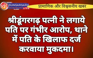 श्रीडूंगरगढ़ लाइव न्यूज़ 16 नवंबर 2023 श्रीडूंगरगढ़ थाने में पति के खिलाफ मुकदमा दर्ज कराते हुए आशा देवी पत्नी रिद्धीकरण...