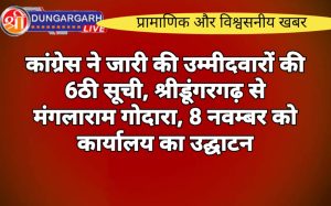 श्रीडूंगरगढ़ लाइव न्यूज़ 8 नवंबर 2023 आज 8 नवंबर 2023 बुधवार का दिन है. आज कार्तिक कृष्णपक्ष की दशमी है...