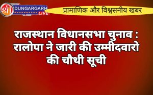 श्रीडूंगरगढ लाइव न्यूज़ 2 नवंबर 2023 भाजपा ने अपने 58 नामों की तीसरी सूची जारी कर दी है। जिसमें श्रीकोलायत...