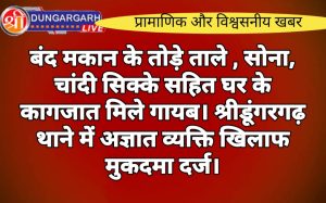 श्रीडूंगरगढ़ लाइव न्यूज़ 4 नवंबर 2023 श्रीडूंगरगढ़ थाने में चोरी का मुकदमा दर्ज कराते हुए आनंद कुमार पुत्र हुकुमचंद जाति...