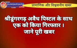 श्रीडूंगरगढ़ लाइव न्यूज 29 दिसंबर 2023 श्रीडूंगरगढ़ पुलिस गस्त के दौरान एक को अवैध पिस्टल के साथ गिरफ्तार किया है।...