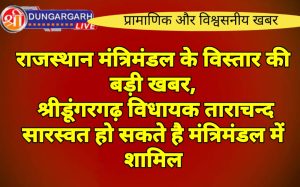 श्रीडूंगरगढ़ लाइव न्यूज़ 30 दिसंबर 2023 मुख्यमंत्री भजनलाल शर्मा के मंत्रिमंडल में बीकानेर के प्रतिनिधित्व को लेकर स्थिति स्पष्ट हो...