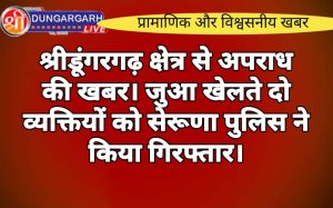 श्रीडूंगरगढ़ लाइव न्यूज़ 30 दिसंबर 2023 सेरूणा पुलिस ने गस्त के दौरान हेड कांस्टेबल जगदीश कुमार की टीम ने दो...