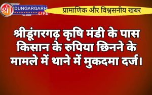 श्रीडूंगरगढ़ लाइव न्यूज़ 26 दिसंबर 2023 श्री डूंगरगढ़ थाने में मुकदमा दर्ज कराते हुए उमेश पुत्र रामलाल शर्मा निवासी वार्ड...
