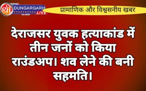श्रीडूंगरगढ़ लाइव न्यूज़ 25 दिसंबर 2023 शुक्रवार देर रात्रि को देराजसर के युवक महेंद्र की हत्या प्रकरण में श्रीडूंगरगढ़ मोर्चरी...