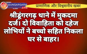 श्रीडूंगरगढ़ लाइव न्यूज़ 7 जनवरी 2024 दहेज के लिए दो विवाहिता बहनों को उनके बच्चों के साथ मारपीट कर ससुराल...