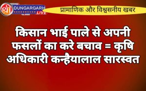 श्रीडूंगरगढ़ लाइव न्यूज़ 4 जनवरी 2023 जैसा कि सरसों फसल पाला के प्रति ज्यादा संवेदनशील है क्योंकि जब न्यूनतम तापक्रम...