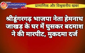 श्रीडूंगरगढ़ लाइव न्यूज़ 10 जनवरी 2023 श्रीडूंगरगढ़ भाजपा के कद्दावर नेता हेमनाथ जाखड़ ने श्रीडूंगरगढ़ पुलिस थाना में मुकदमा दर्ज...