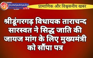 श्रीडूंगरगढ़ लाइव न्यूज़ 17 जनवरी 2024 श्रीडूंगरगढ़ सिद्ध जाति को केंद्रीय पिछड़ा वर्ग की सूची में शामिल करने के लिए...