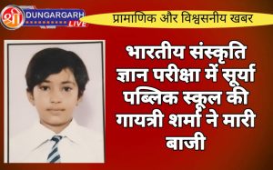 श्रीडूंगरगढ़ लाइव न्यूज़ 23 फरवरी 2024 भारतीय संस्कृति ज्ञान परीक्षा में सूर्या पब्लिक स्कूल की गायत्री शर्मा ने मारी बाजी...