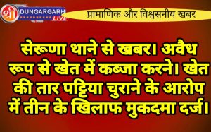 श्रीडूंगरगढ़ लाइव न्यूज़ 3 फरवरी 2024 सेरूणा थाने में रिपोर्ट दर्ज करवाते हुए वन विभाग के श्रीडूंगरगढ़ रेंज के अधिकारी...