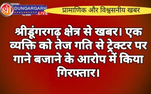 श्रीडूंगरगढ़ लाइव न्यूज़ 3 फरवरी 2024 सेरूणा पुलिस ने गस्त के दौरान एसआई राजकुमार की टीम ने हॉस्पिटल के सामने...