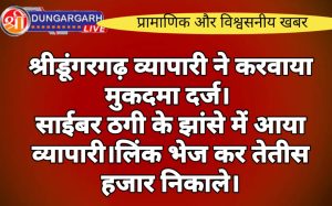 श्रीडूंगरगढ़ लाइव न्यूज़ 12 फरवरी 2024 आजकल ऑनलाइन ठगी के मामले बहुत ज्यादा बढ़ रहे हैं आए दिन फ्रॉड लोग...