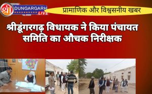 श्रीडूंगरगढ़ लाइव न्यूज़ 12 फरवरी 2024 श्रीडूंगरगढ़ विधायक ताराचंद सारस्वत ने पंचायत समिति का औचक निरीक्षण करते हुए शख्ती से...