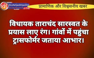 श्रीडूंगरगढ़ लाइव न्यूज़ 15 फरवरी 2024 क्षेत्र के गुसाईंसर गांव में 5k ट्रांसफार्मर के लिए विधायक ताराचंद सारस्वत ने बिजली...
