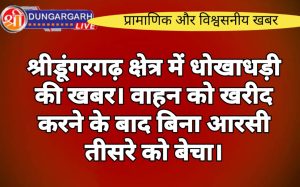 श्रीडूंगरगढ़ लाइव न्यूज़ 16 फरवरी 2024 श्रीडूंगरगढ़ थाने में धोखाधड़ी का मुकदमा दर्ज करवाते हुए शेरनाथ पुत्र चेतननाथ उम्र 67...