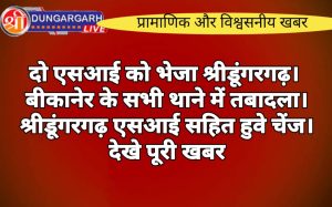 श्रीडूंगरगढ़ लाइव न्यूज़ 19 फरवरी 2024 बीकानेर में बदल गए अधिकांश थानेदार: नयाशहर से गोविन्द व्यास को हटाया, कोटगेट में...