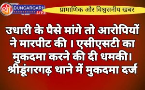 श्रीडूंगरगढ़ लाइव न्यूज़ 26 मार्च 2024 श्रीडूंगरगढ़ थाने में मुकदमा दर्ज करवाते हुए विक्रमसिंह पुत्र दीवान सिंह जाति राजपूत उम्र...
