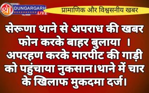 श्रीडूंगरगढ़ लाइव न्यूज़ 27 मार्च 2024 सेरूणा थाने में मुकदमा दर्ज करवाते हुए दानाराम पुत्र मांगीलाल जाति जाट उम्र 30...