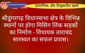 श्रीडूंगरगढ़ लाइव न्यूज़ 10 मार्च 2024 श्रीडूंगरगढ़ विधायक सारस्वत ने बताया कि श्रीडूंगरगढ़ विधानसभा क्षेत्र के ग्रामीणों को आवागमन सुविधा...