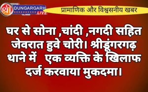 श्रीडूंगरगढ़ लाइव न्यूज़ 15मार्च 2024 अपने घर से जेवरात चोरी का मुकदमा दर्ज करवाते हुए सीताराम पुत्र लक्ष्मीराम पुरोहित उम्र...