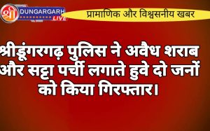 श्रीडूंगरगढ़ लाइव न्यूज़ 16 मार्च 2024 श्रीडूंगरगढ़ पुलिस ने गस्त के दौरान दो मामलों में अलग-अलग जगह पर दो युवकों...