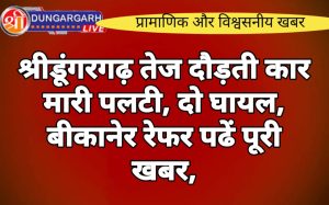 श्रीडूंगरगढ़ लाइव न्यूज़ 14 अप्रेल 2024 श्रीडूंगरगढ़ घुमचक्कर पवन होटल के सामने एक तेज रफ्तार गाड़ी ने पलटा मार दिया।...