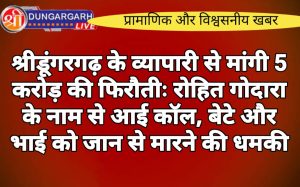 श्रीडूंगरगढ़ लाइव न्यूज़ 14 अप्रैल 2024 गैंगस्टर रोहित गोदारा के नाम से एक व्यापारी परिवार से पांच करोड़ रुपए की...