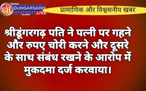 श्रीडूंगरगढ़ लाइव न्यूज़ 7 अप्रैल 2024 जयकरण पुत्र विजय कुमार जाति वाल्मीकि निवासी आडसर बास ने अपनी पत्नी और एक...