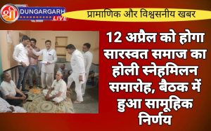 श्रीडूंगरगढ़ लाइव न्यूज़ 7 अप्रैल 2024 सारस्वत समाज कुंडिया की बैठक आज रविवार को श्रीडूंगरगढ़ सारस्वत भवन में समाज के...