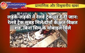 श्रीडूंगरगढ़ लाइव न्यूज़ 29 मई 2024 नापासर गांव के पास रेलवे ट्रेक पर एक युवक और युवती ने ट्रेन के...