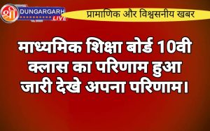 श्रीडूंगरगढ़ लाइव न्यूज़ 29 मई 2024 राजस्थान माध्यमिक शिक्षा बोर्ड अजमेर ने आज 10वी का रिजल्ट जारी कर दिया है।...