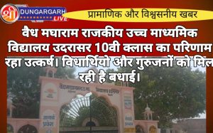 श्रीडूंगरगढ़ लाइव न्यूज़ 29 मई 2024 माध्यमिक शिक्षा बोर्ड का परिणाम आने के साथ ही वैद्य मघाराम राजकीय उच्च माध्यमिक...