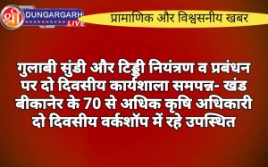 श्रीडूंगरगढ़ लाइव न्यूज़ 30 मई 2024 खंड बीकानेर के अतिरिक्त निदेशक कृषि डॉ. सुरेन्द्र सिंह शेखावत ने बताया कि जिला...