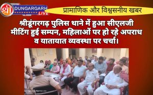 श्रीडूंगरगढ़ लाइव न्यूज़ 30 मई 2024 श्रीडूंगरगढ़ थाने में आज सीएलजी मीटिंग का आयोजन किया गया जिसमें पुलिस उपाधीक्षक निकेत...