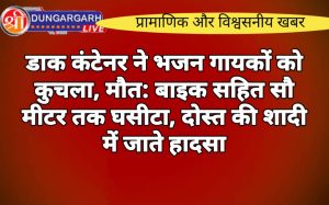 श्रीडूंगरगढ़ लाइव न्यूज़ 16 मई 2024 कंटेनर की टक्कर से दो भजन गायकों की मौत हो गई। युवक बाइक सहित...