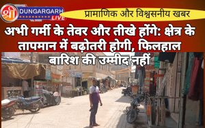 श्रीडूंगरगढ़ लाइव न्यूज़ 18 मई 2024 क्षेत्र तापमान में आने वाले दिनों में बढ़ोतरी होना तय है। फिलहाल बारिश की...