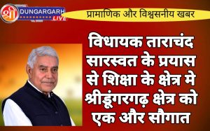 श्रीडूंगरगढ़ लाइव न्यूज़ 18 मई 2024 श्रीडूंगरगढ़ विधायक ताराचंद सारस्वत ने विधानसभा क्षेत्र में उच्च शिक्षा के बढ़ावा देने के...