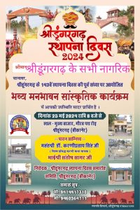 श्रीडूंगरगढ़ लाइव न्यूज़ 19 में 2024 श्रीडूंगरगढ़।शहर की स्थापना के एक सौ बयालीस वर्ष इस साल 26 मई को पूरे...