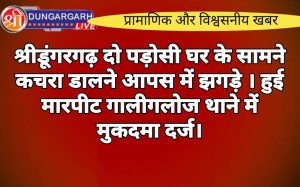 श्रीडूंगरगढ़ लाइव न्यूज़ 22 मई 2024 श्रीडूंगरगढ़ थाना में मुकदमा दर्ज करवाते हुए राजकुमार पुत्र माणकचंद बोहरा निवासी कालूबास ने...