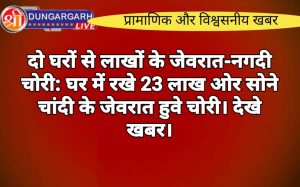 दो घरों से लाखों के जेवरात-नगदी चोरी: घर में रखे 23 लाख ओर सोने चांदी के जेवरात हुवे चोरी। देखे खबर।