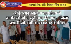 श्रीडूंगरगढ़ लाइव न्यूज़ 30जून 2024 श्रीडूंगरगढ़ भाजपा कार्यालय में आज भाजपा कार्यकर्ताओं ने मोदी जी की मन की बात कार्यक्रम...