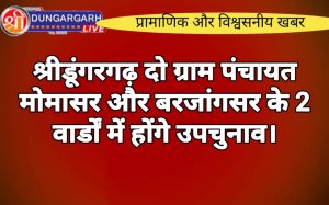 श्रीडूंगरगढ़ लाइव न्यूज़ 20जून 2024 पंचायती राज संस्थाओं के रिक्त पदों के लिए उप चुनाव होंगे। पंचायत समिति क्षेत्र श्रीडूंगरगढ़...