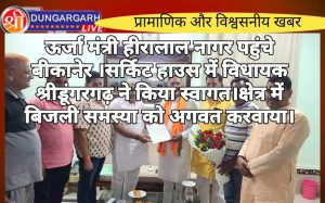 श्रीडूंगरगढ़ लाइव न्यूज़ 20जून 2024 श्रीडूंगरगढ़ विधायक ताराचंद सारस्वत ने बीकानेर में मुख्य अभियंता कार्यालय सभागार में राजस्थान सरकार के...
