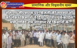 श्रीडूंगरगढ़ लाइव न्यूज़ 20जून 2024 विधानसभा क्षेत्र के सेरूणा गांव में आज कांग्रेस कार्यकर्ताओं द्वारा बिजली की समस्याओं को लेकर...